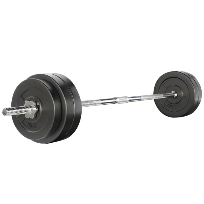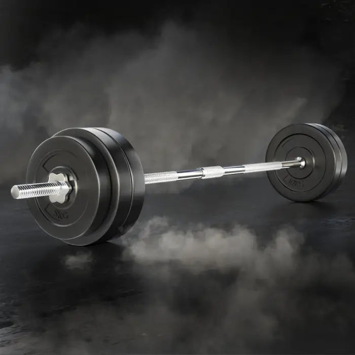 Made of strong materials, these Home Gym Weight Plates will allow you to strengthen and tone your muscles at home with ease. These weight plates are filled with sand and covered with robust, floor-friendly rubber to minimize noise and floor damage. Easily add and remove plates to ensure an appropriate workout for your specific muscles. Plus, the included solid chrome plated steel Barbell Bar, holds up to 150kg and is compatible with most standard 31mm - 35mm hole weight plates, so you can work at any weight. Choose from the fitness range that is both good for your body and good for your wallet.