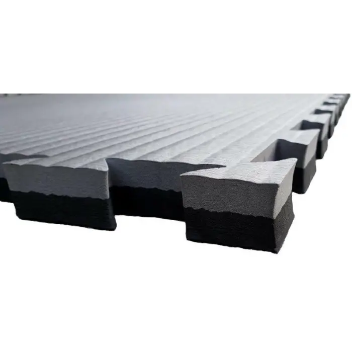 These interlocking mats are constructed of the firm, high-quality ethylene vinyl acetate (EVA) foam. The EVA material for each of our 3cm thick mat tiles carries a Shore A 45 density rating. They're also rated to prevent head injuries in falls of up to 1.35m, prioritising athlete safety and allowing you to train with confidence. The tiles contain materials that are safe for children. The EVA foams are extremely durable and do not absorb liquids. This is a special type of closed-cell foam. It costs a bit more than open-cell foam, but those types of foams potentially will absorb moisture, which can lead to problems with odour, mould, and mildew.